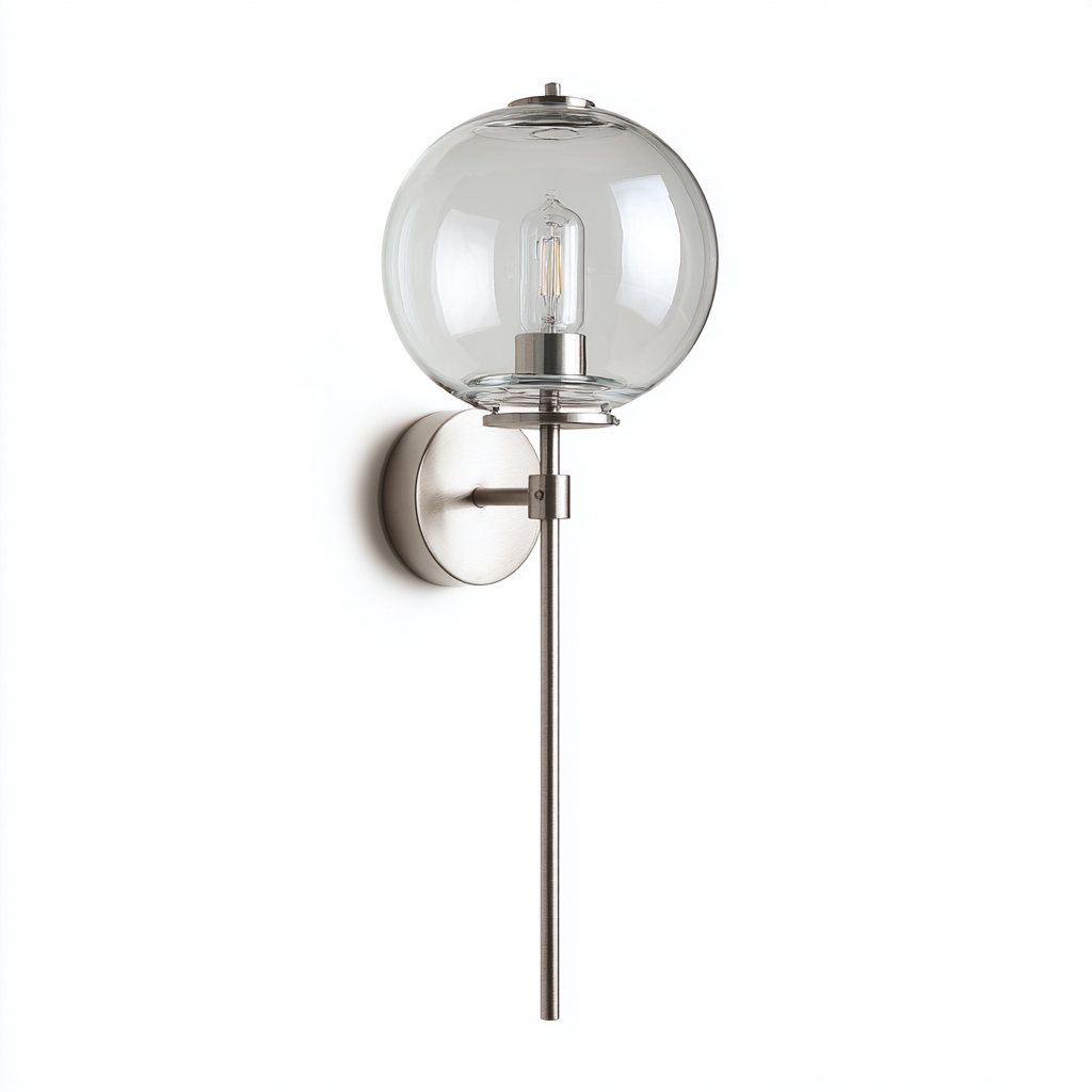 Applique con sfera in vetro trasparente e barra metallica 16x12x48 cm - trasparente - stile minimal