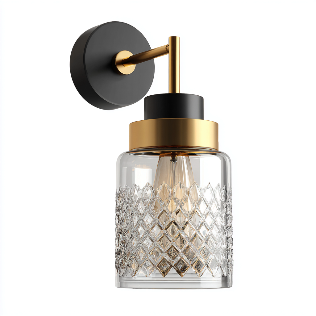 Applique in vetro inciso e metallo 15x11x28 cm - nero e oro - stile moderno