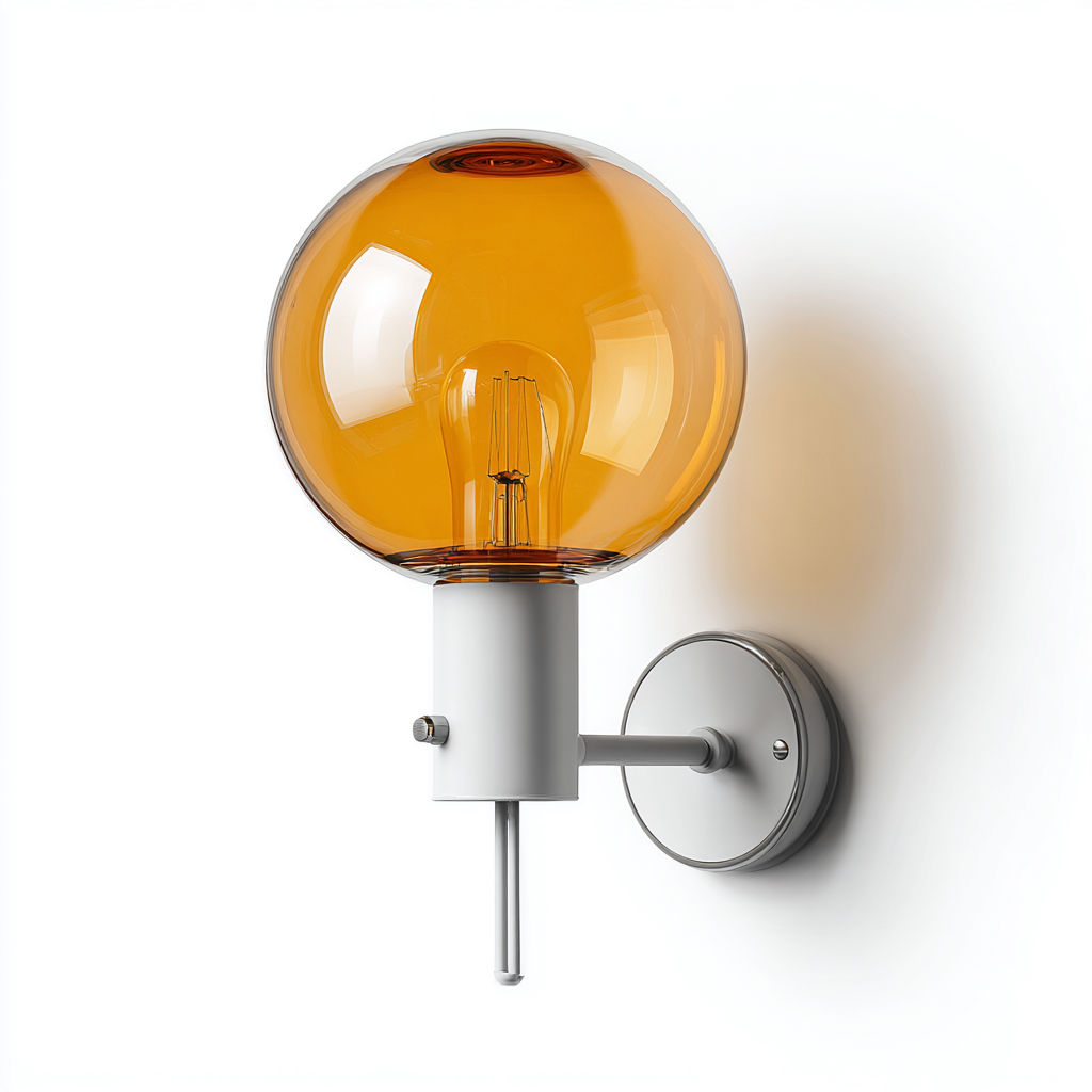 Applique con sfera in vetro ambra e struttura metallica 14x12x30 cm - arancione - stile moderno