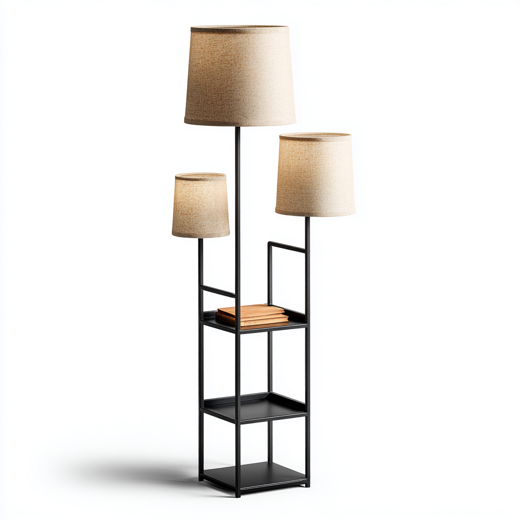 Questa lampada da terra con struttura metallica nera e tre paralumi in tessuto beige offre una soluzione luminosa versatile e decorativa, ideale per salotti, camere da letto o angoli lettura.